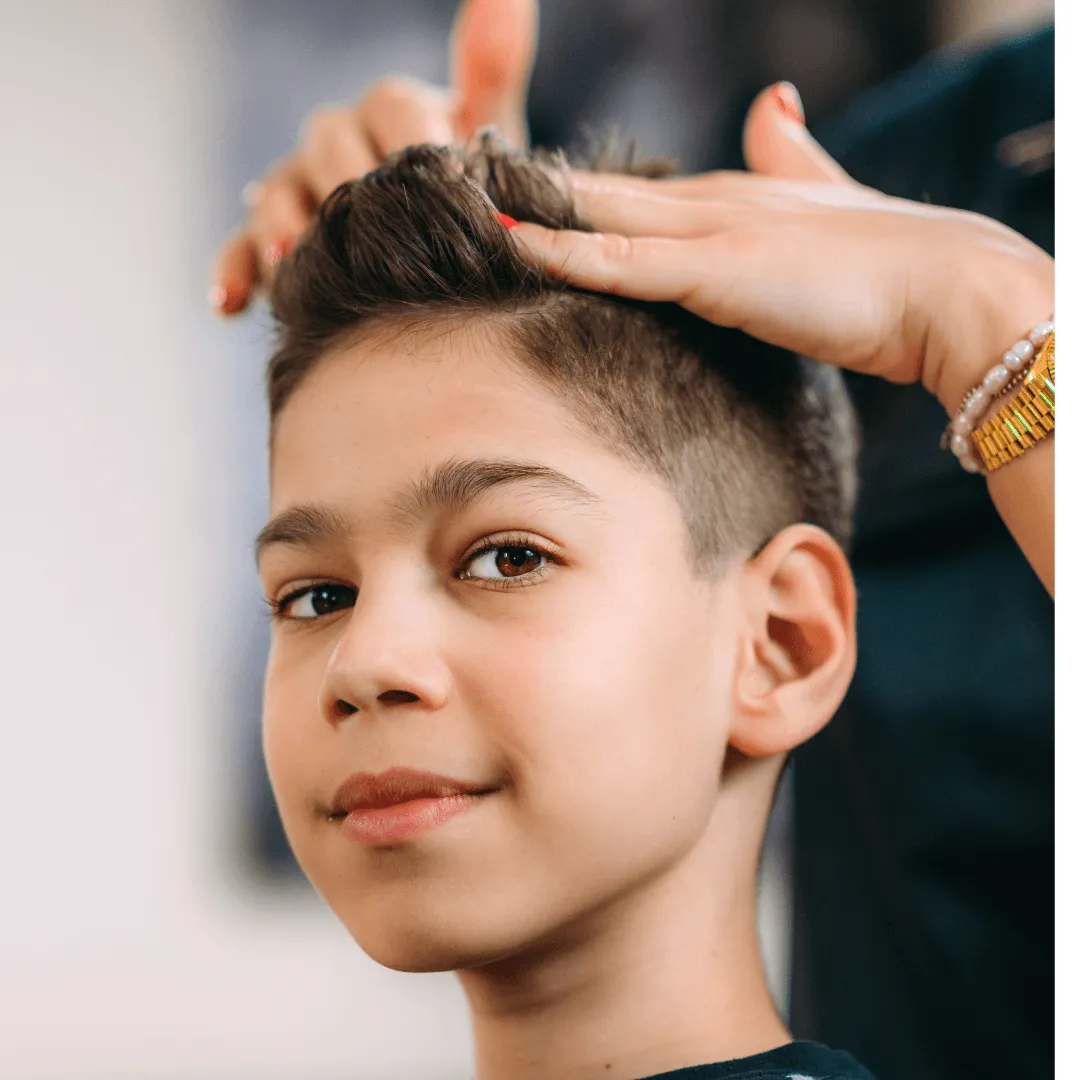 A gentle, patient haircut with light styling to finish. Custom-fit to your child’s hair texture and activity level for a cute, comfortable look.