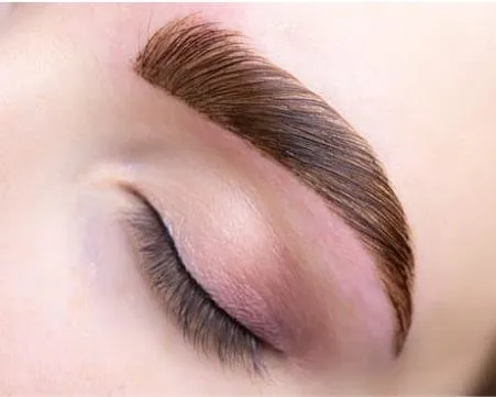Semi-permanent strokes that mimic natural brow hairs for fuller, defined eyebrows.